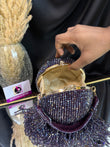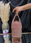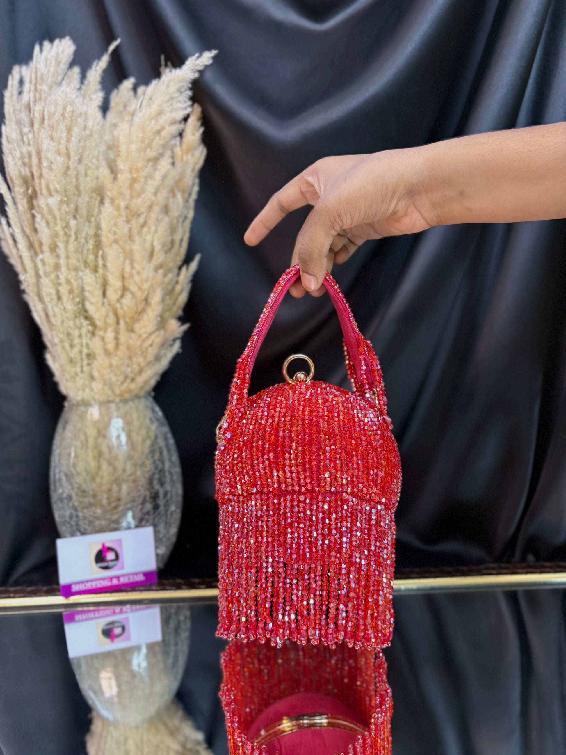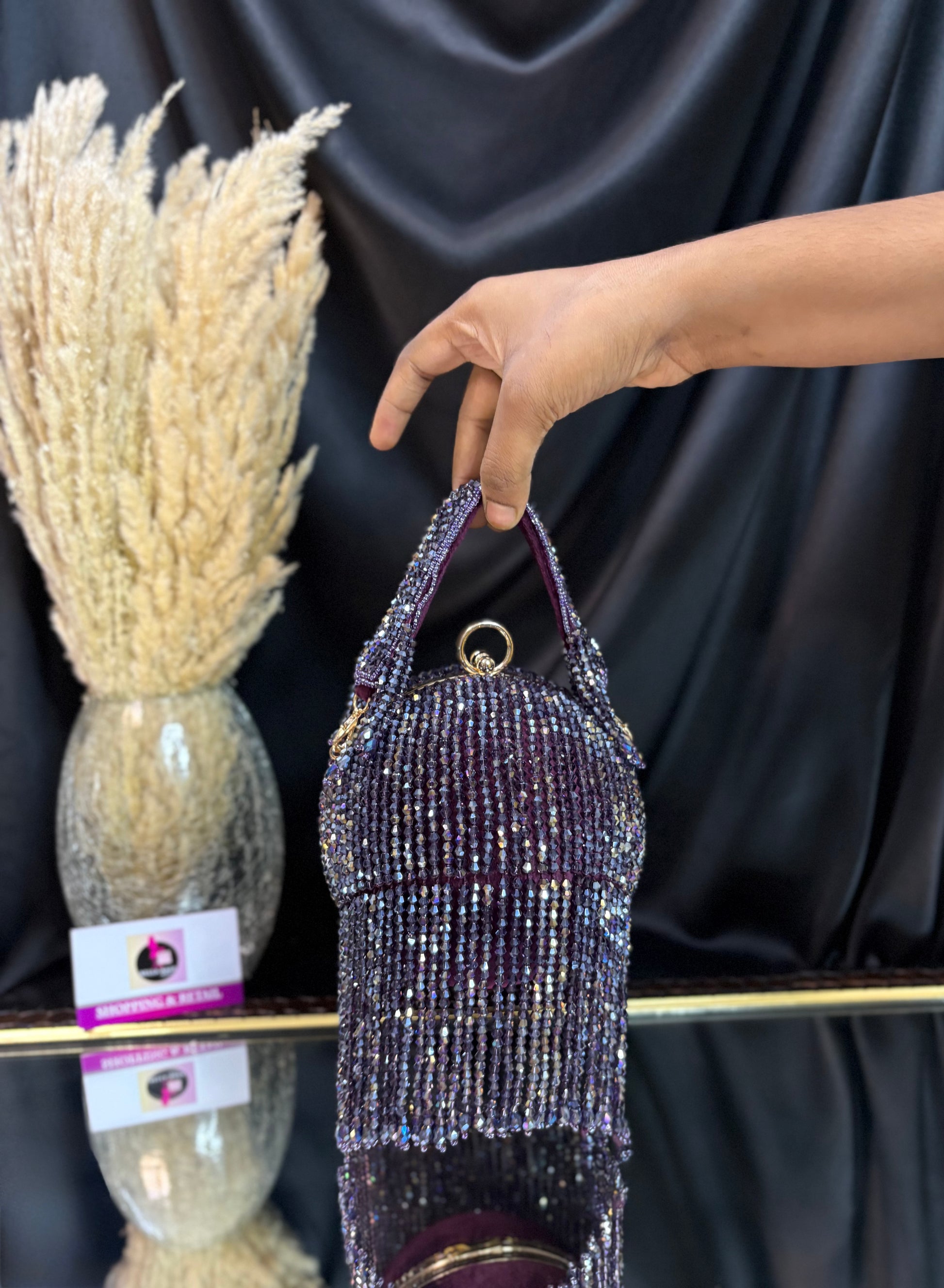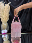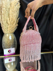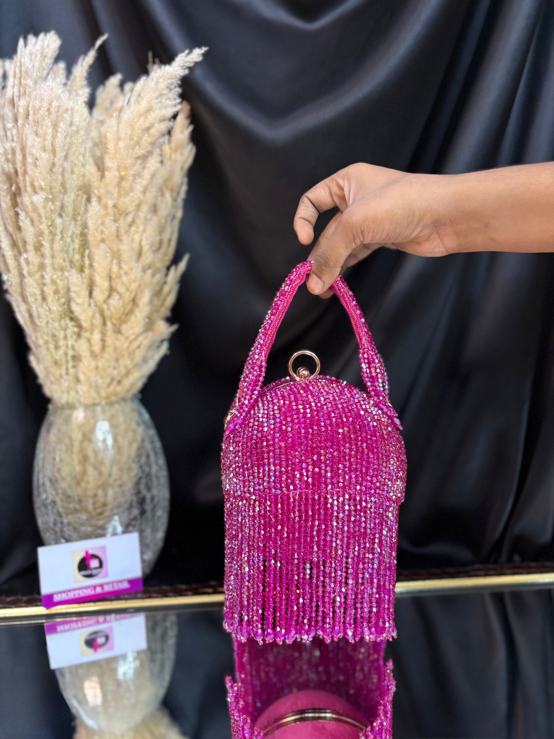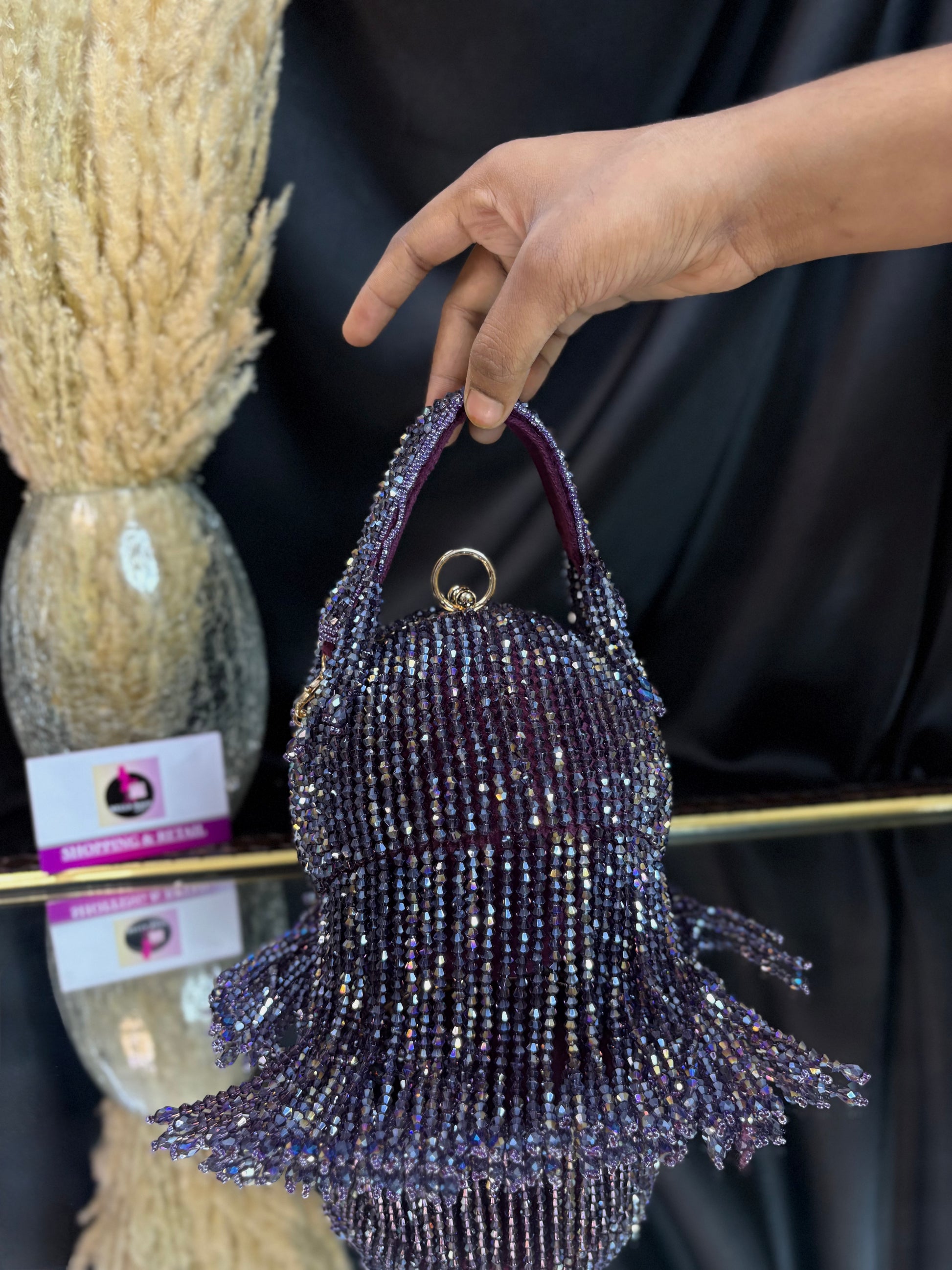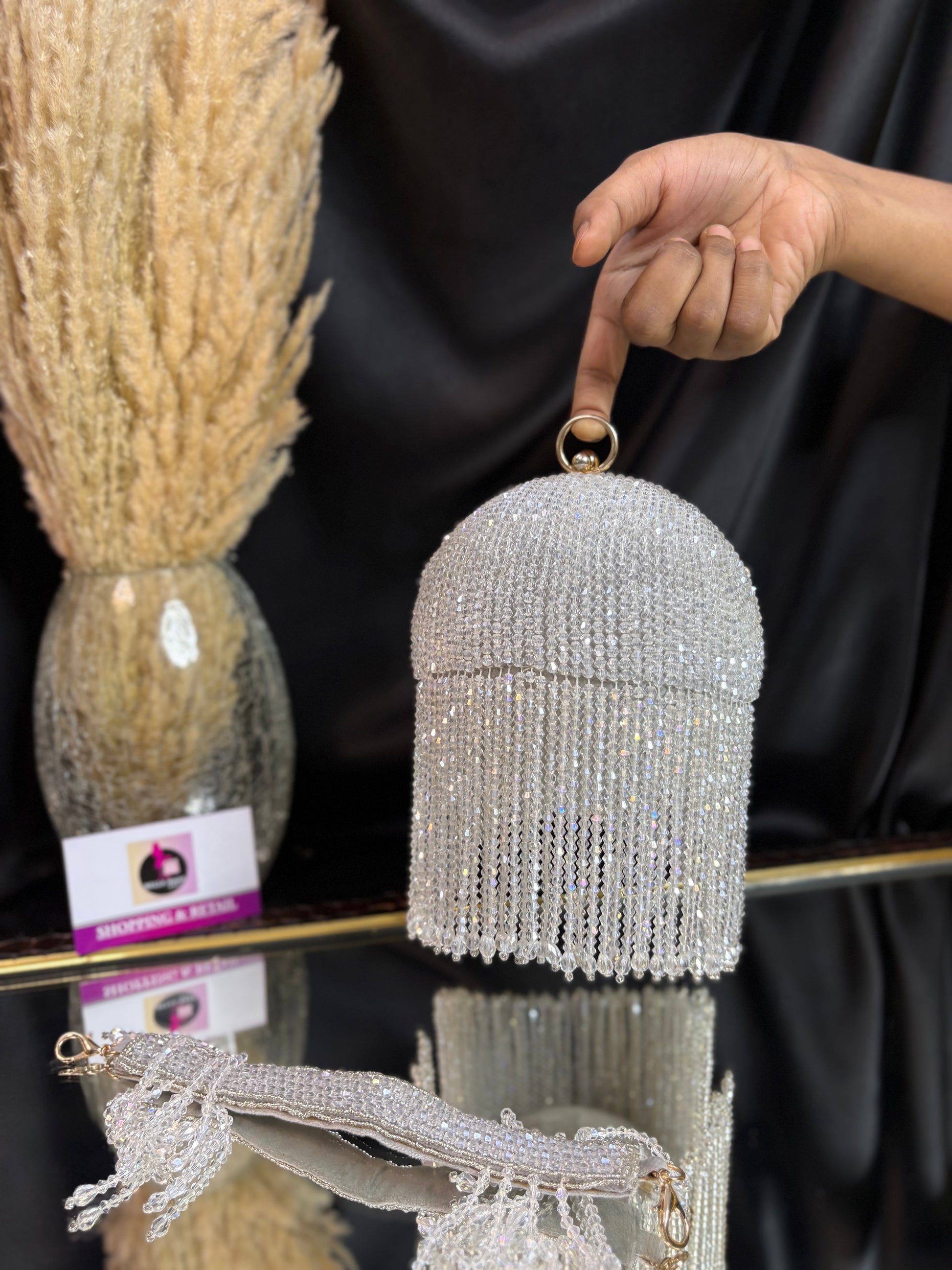 Chic beaded bag with a dome shape, fully embellished in shimmering crystals and finished with dazzling fringe tassels — a playful yet elegant party essential. Outer Material: crystal beads. Phone Capacity: Phone will not fit in. Sling: comes with a detachable handle. Closure: lock enclosure. Pocket: No Pocket. Care Instructions: Keep it in a protective space when not in use and keep it away from moisture. Carry delicately!.