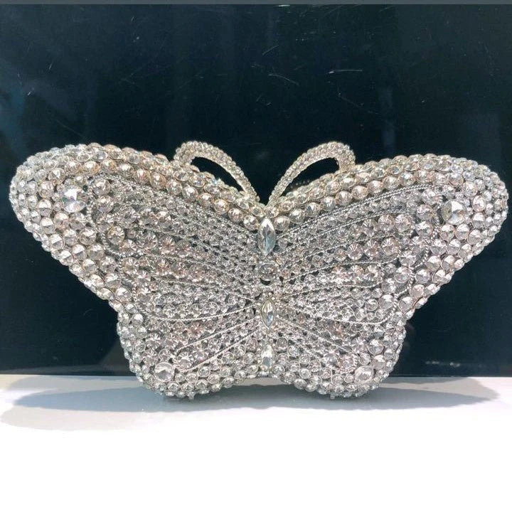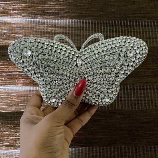 A statement butterfly crystal clutch with intricate detailing and luxe sparkle, designed to elevate festive and evening looks. Eye-catching, and made to shine with every move. ✨