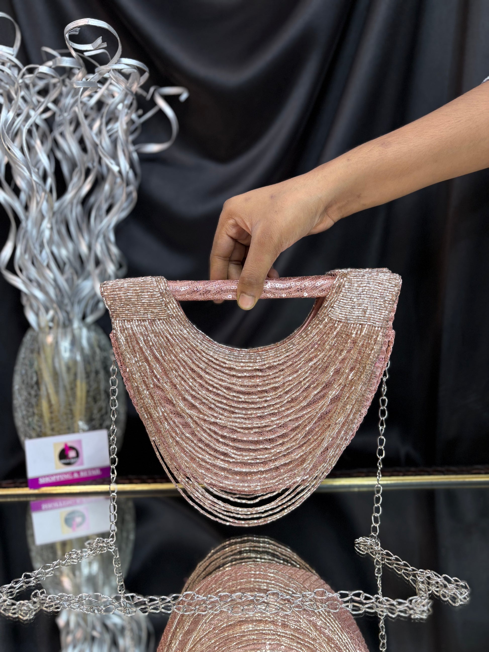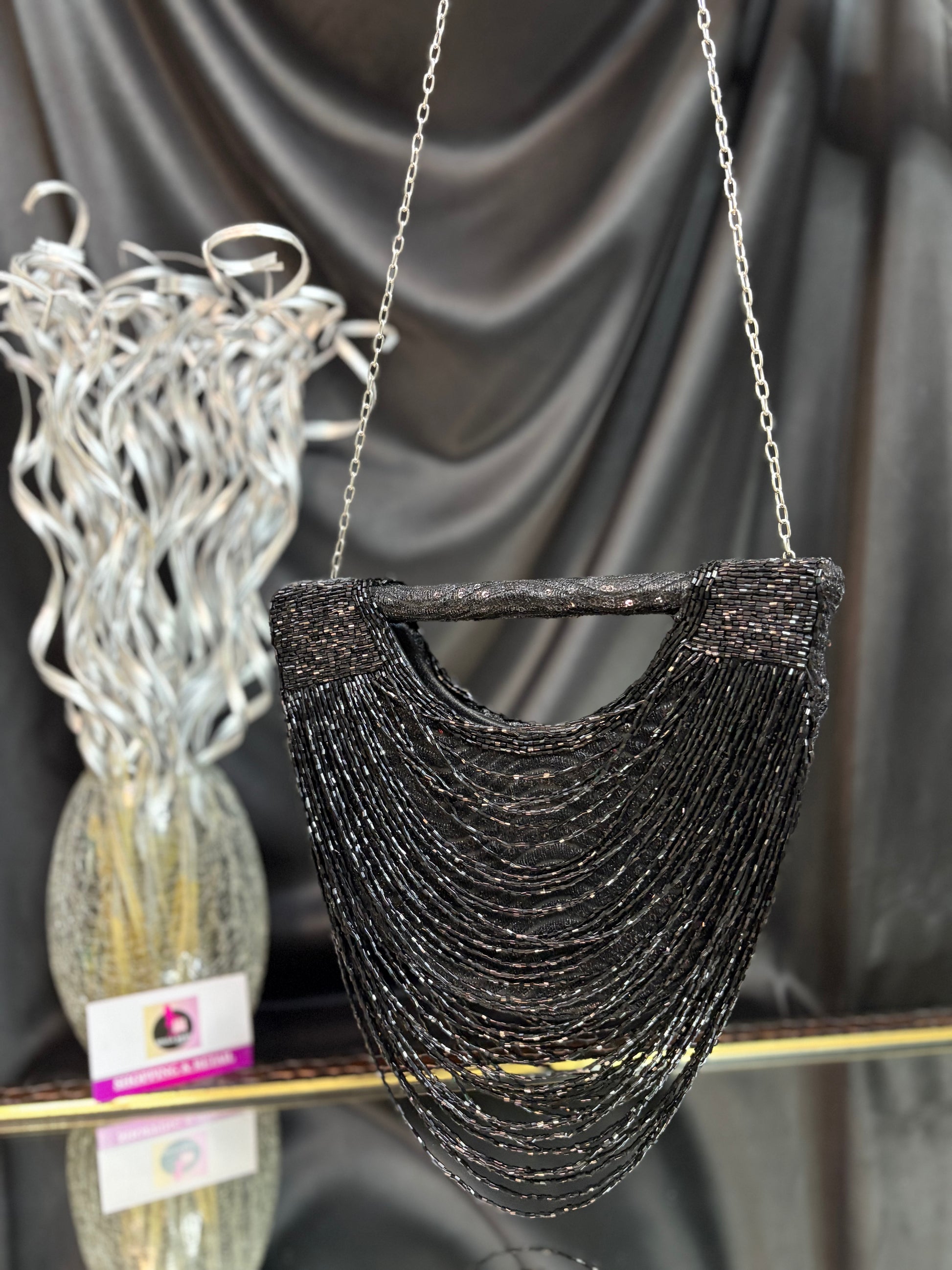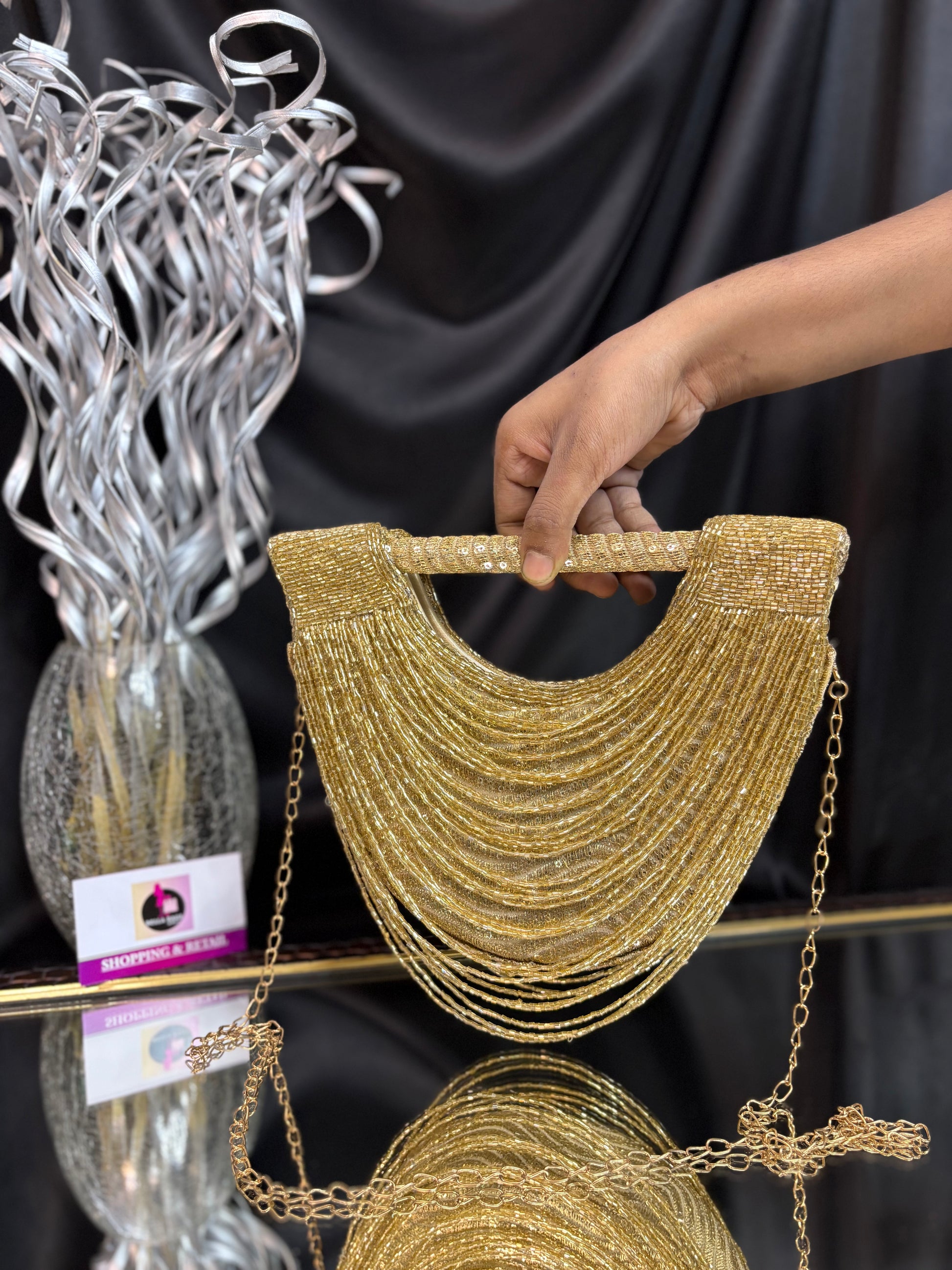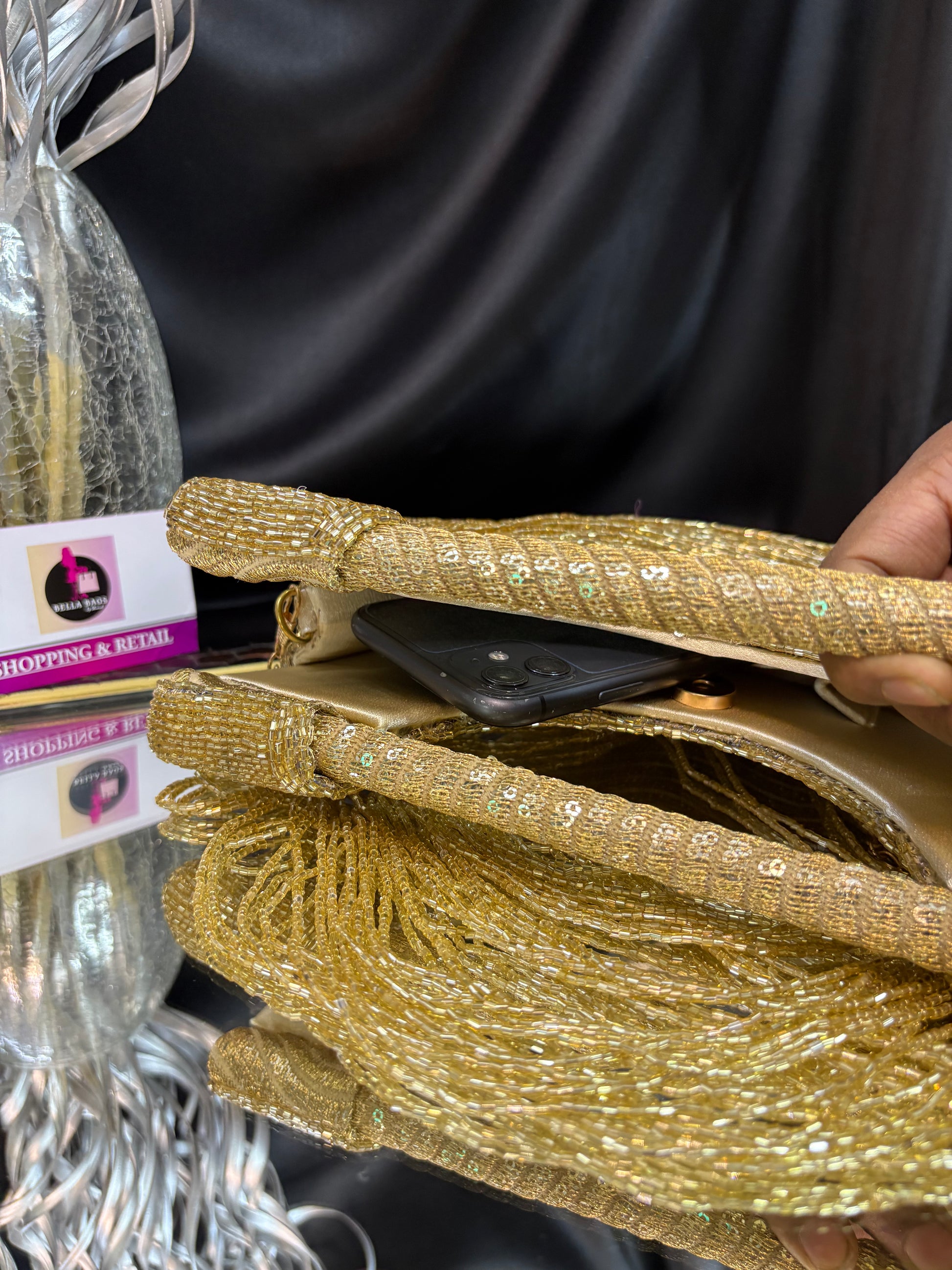 Chic tassel clutch featuring layers of shimmering beaded chains, a sleek top handle, and a detachable chain strap — a perfect blend of glam and sophistication for evening occasions. Outer Material: tassel fringes. Phone Capacity: Thin limited spacing, phone fits partially. Sling: Comes with a detachable sling chain. Closure: Magnet button given. Pocket: No Pocket. Care Instructions: Keep in a protective space when not in use and keep away from Moisture.Carry delicately!