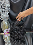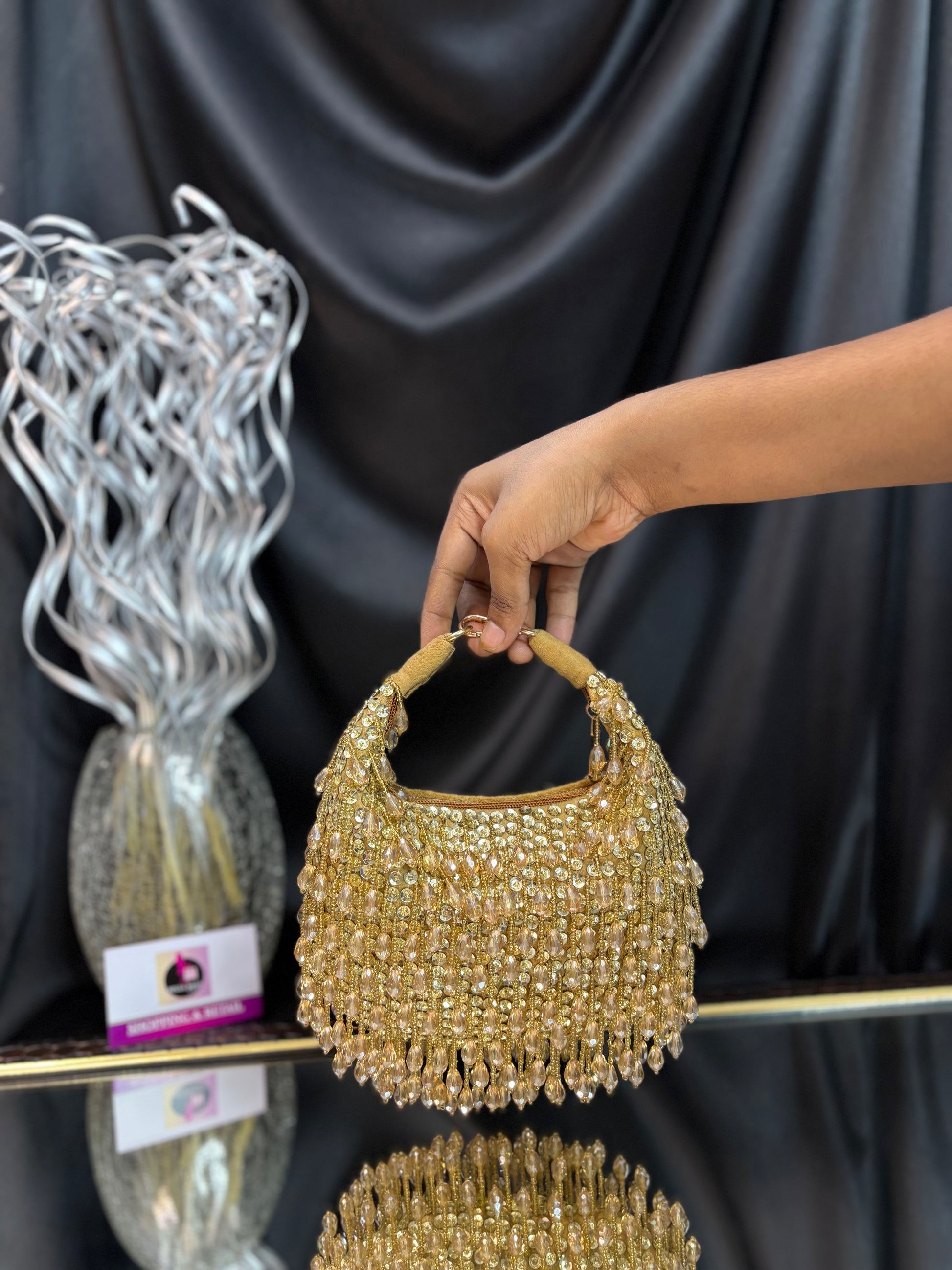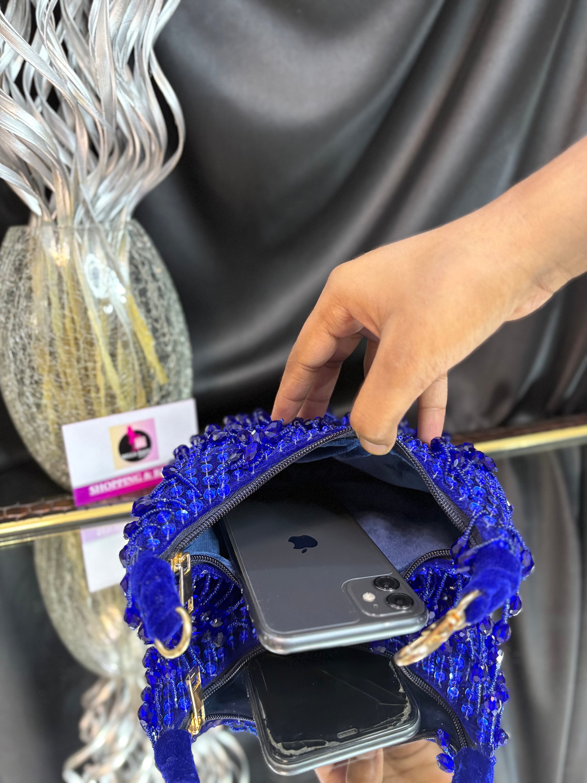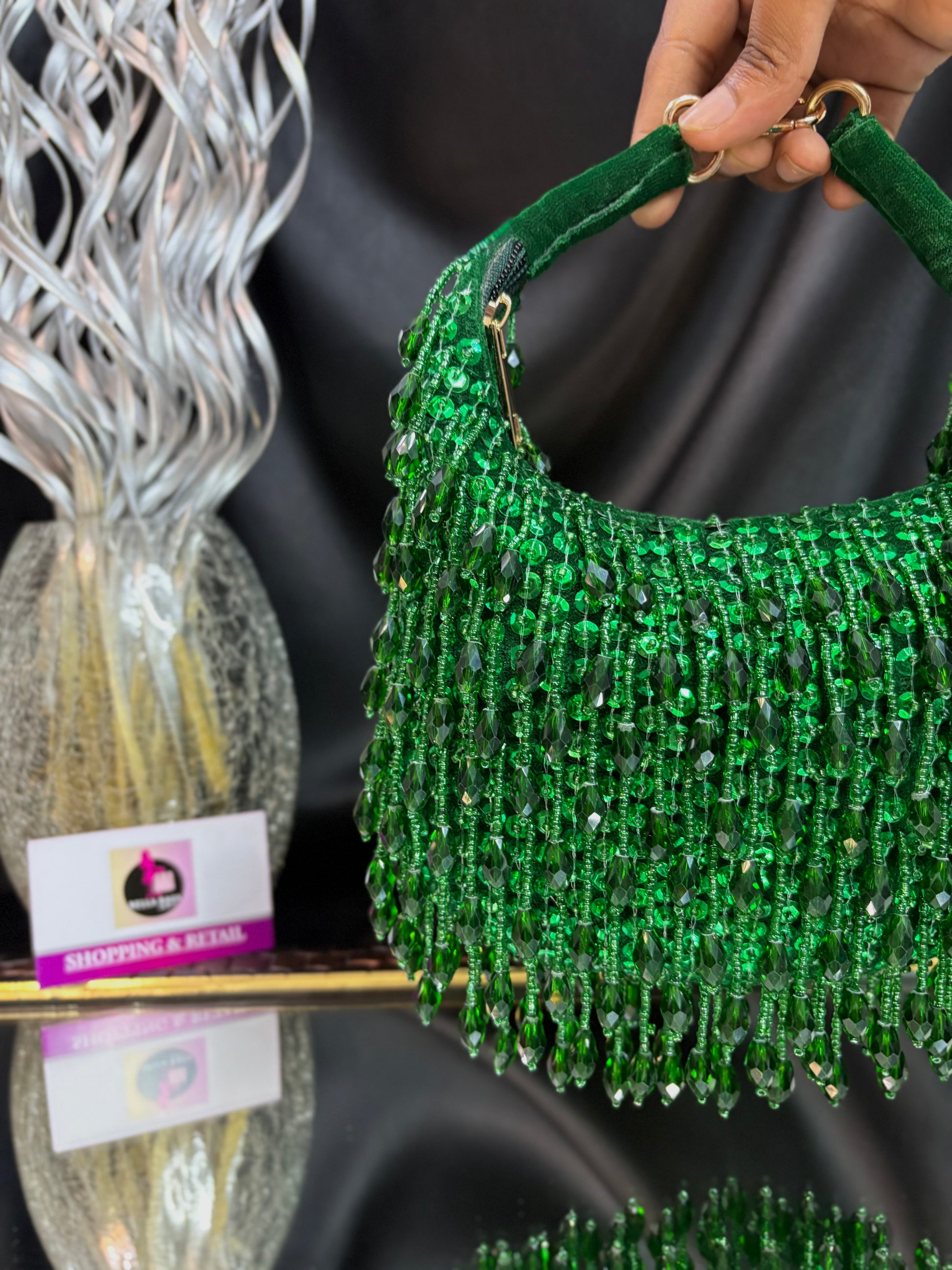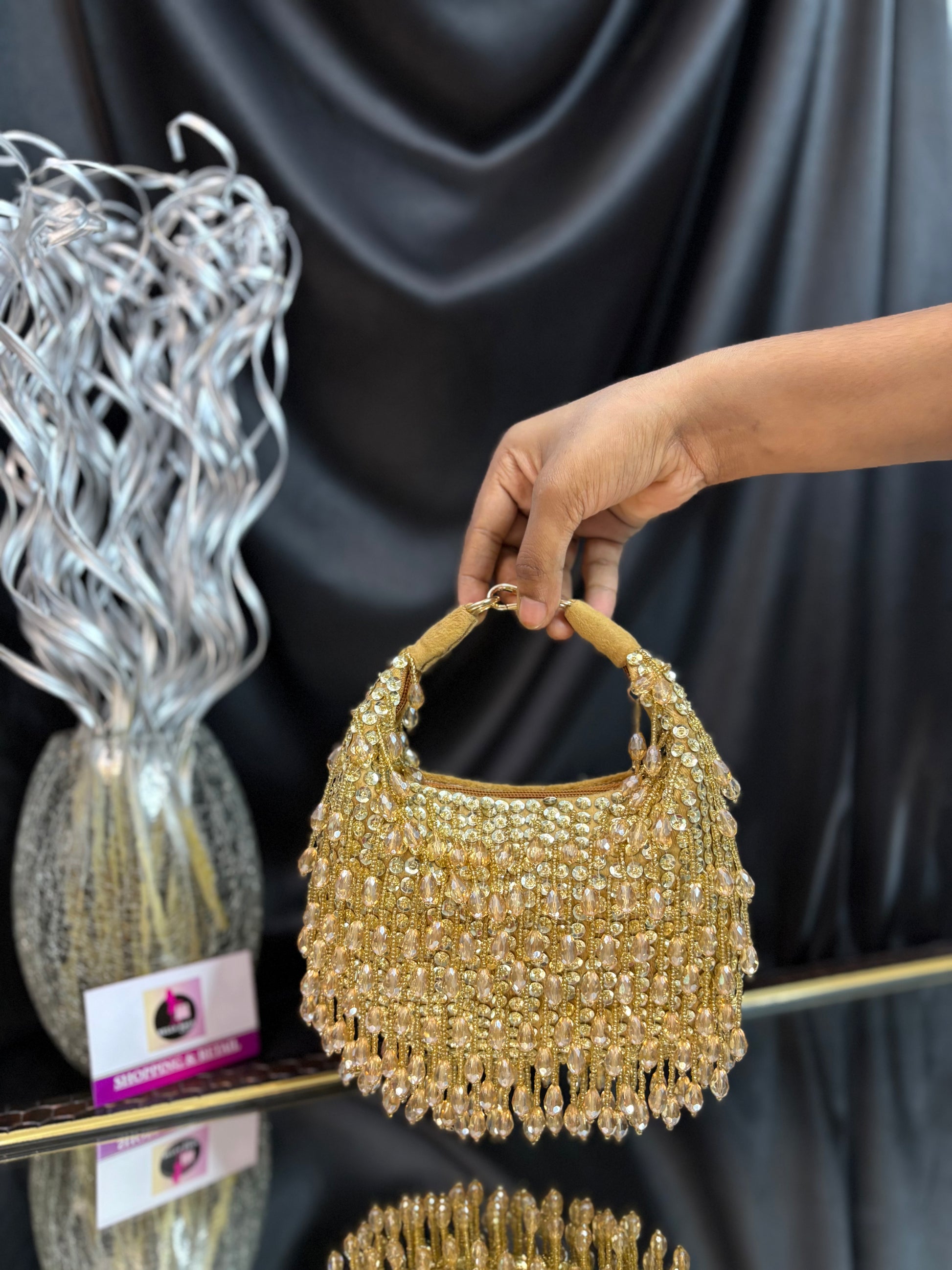 This dazzling moon bag is adorned with shimmering beads and sequins, making it a perfect statement piece for weddings or festive occasions. Available in 9 colours, its chic, curved shape and sparkling fringe detail add an elegant and glamorous touch to any ensemble. Outer Material: crystal beads and sequins. Phone Capacity: Phone will fit in (iPhone 11 shown). Sling: comes with an attached hook enclosure. Closure: zip enclosure. Pocket: No Pocket. Care Instructions: Keep it in a protective space when not in use and keep it away from moisture. Carry delicately!.