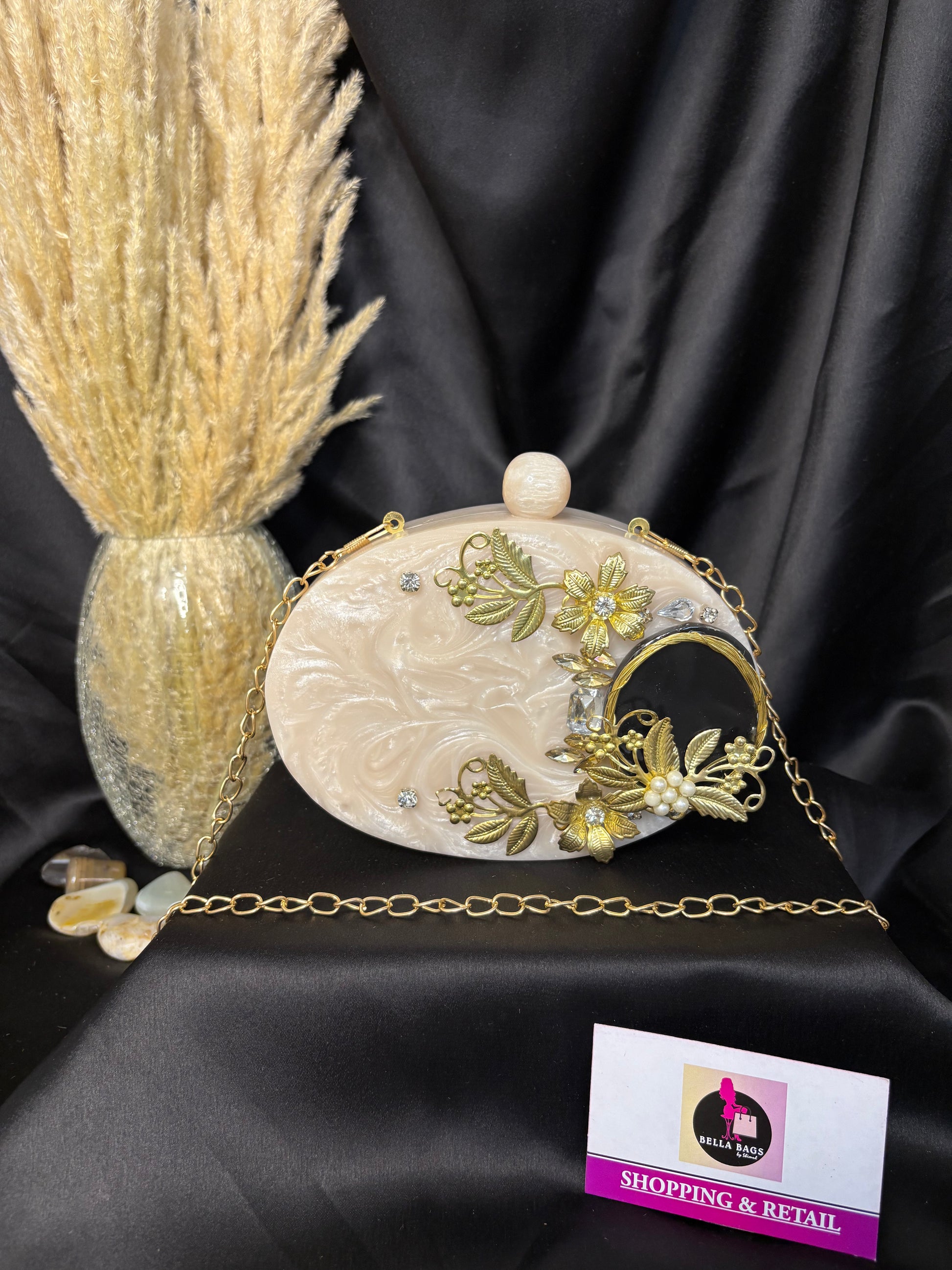 Introducing our elegant daizy clutch, crafted with a durable resin exterior. Comes in 1 classic colour, seamlessly complements any outfit. Outer Material: Resin