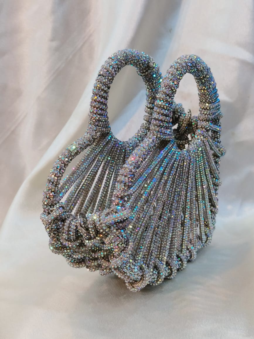 Fall in love with this heart crystal beaded handbag—a sparkling statement piece that effortlessly elevates your evening style. Meticulously handcrafted with shimmering beads and delicate heart-shaped crystal embellishments, this purse is perfect for date nights, weddings, or festive occasions. The structured yet elegant design complements gowns, saris, and cocktail dresses alike. Lightweight yet striking, it carries your essentials in style while adding a touch of romance to every outfit. Make every moment sparkle with this timeless beaded masterpiece.