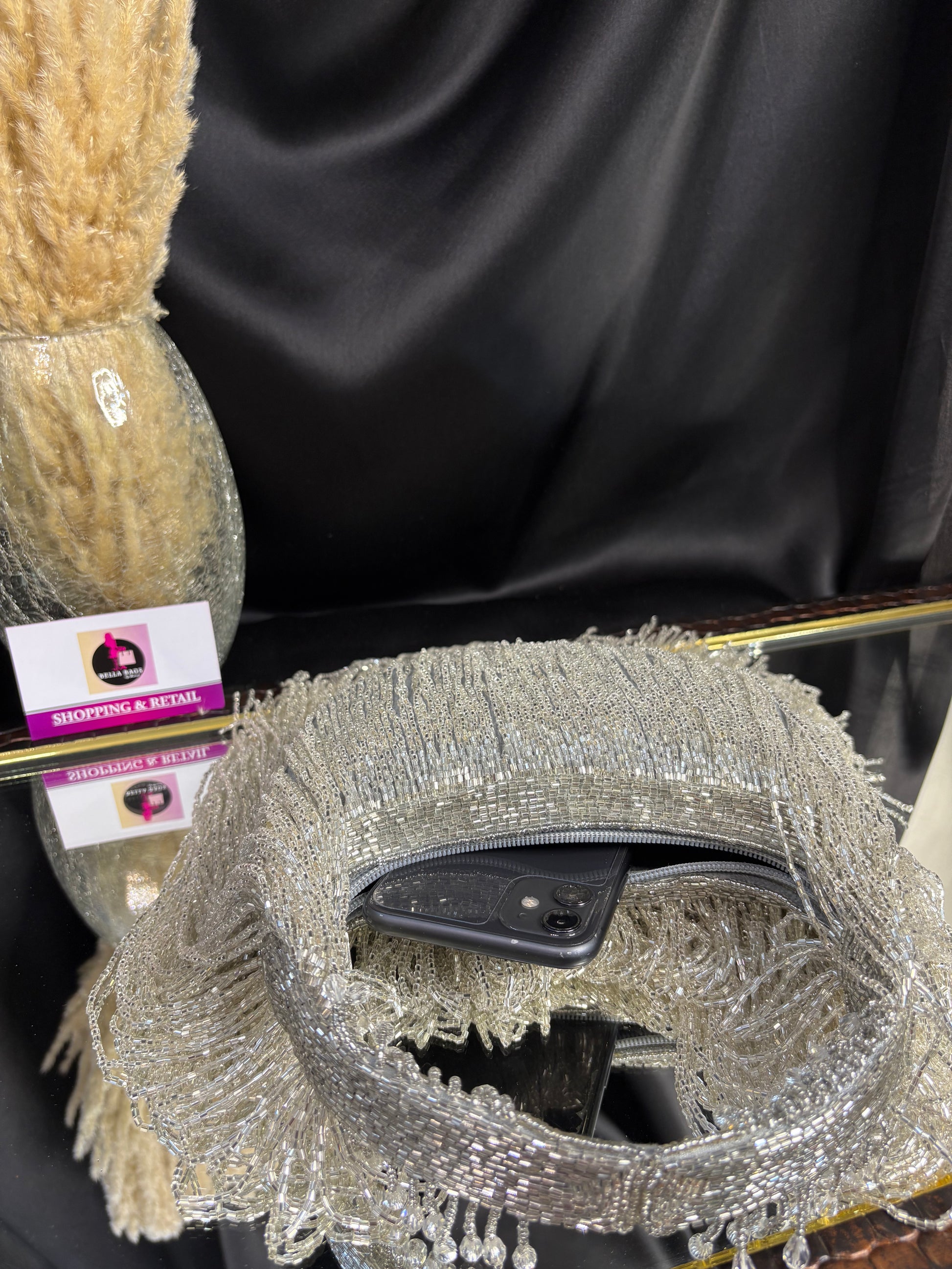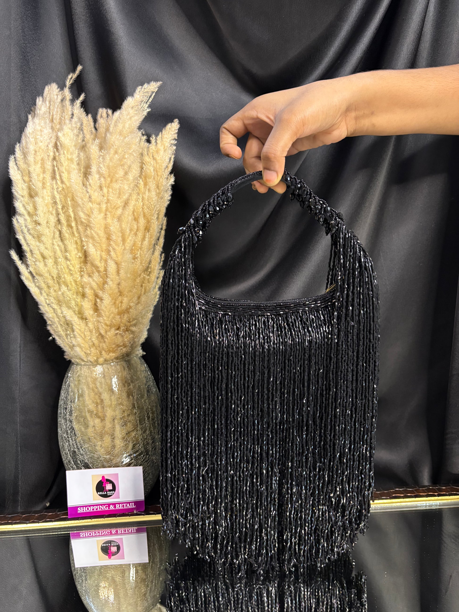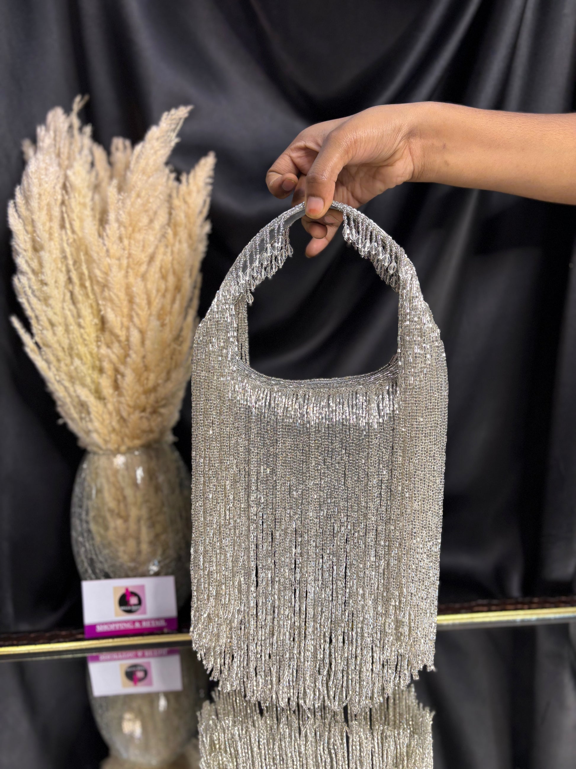 Statement fringe bag and our hot selling piece with shimmering bead tassels and a handle — bold, glamorous, and perfect for party nights. outer material: premium full tassels. Phone Capacity: Phone will fit in. Sling: Attached handle. Closure: zip-closure. Pocket: No Pocket. Care Instructions: Keep it in a protective space when not in use and keep it away from moisture. Carry delicately!
