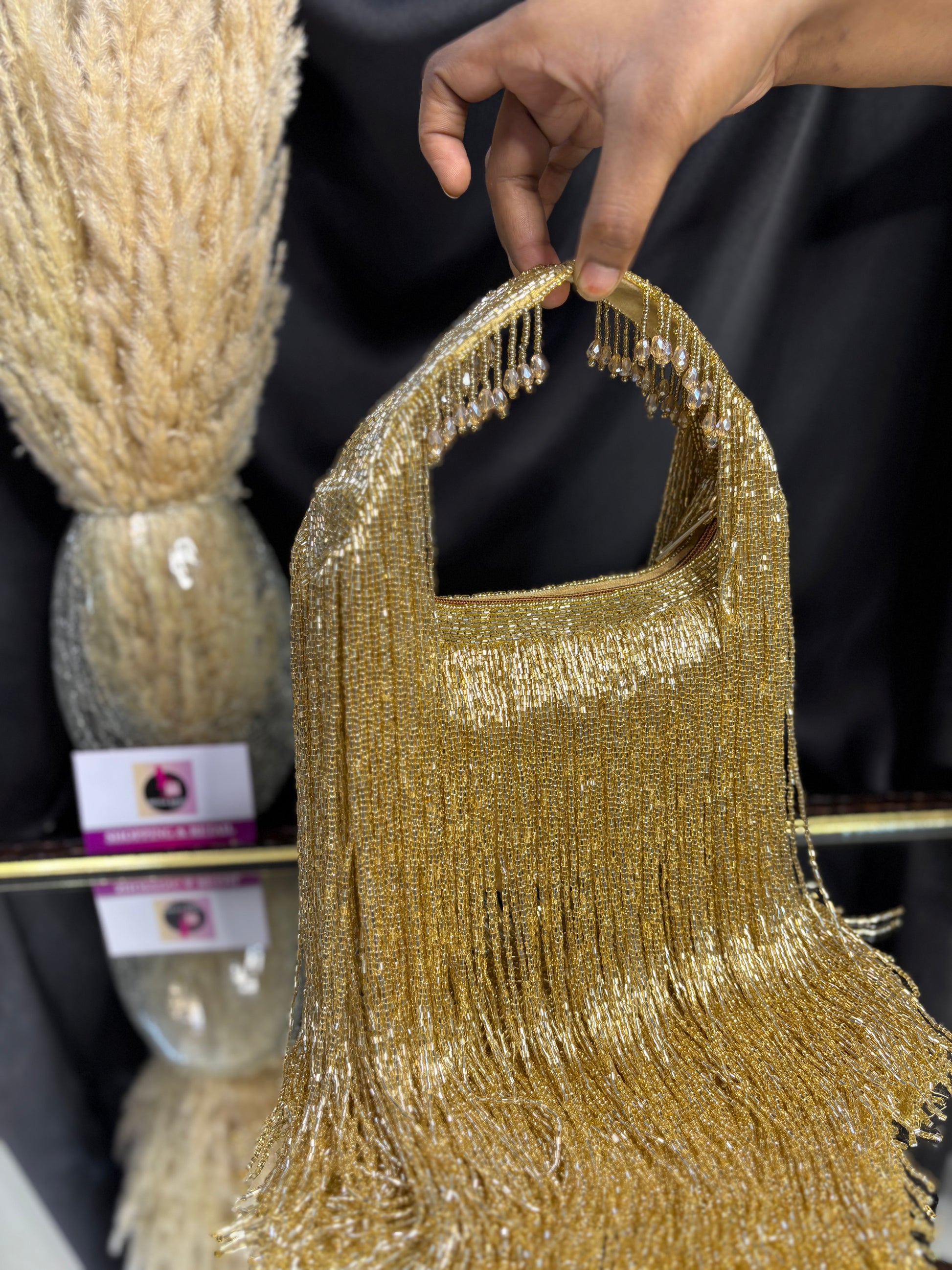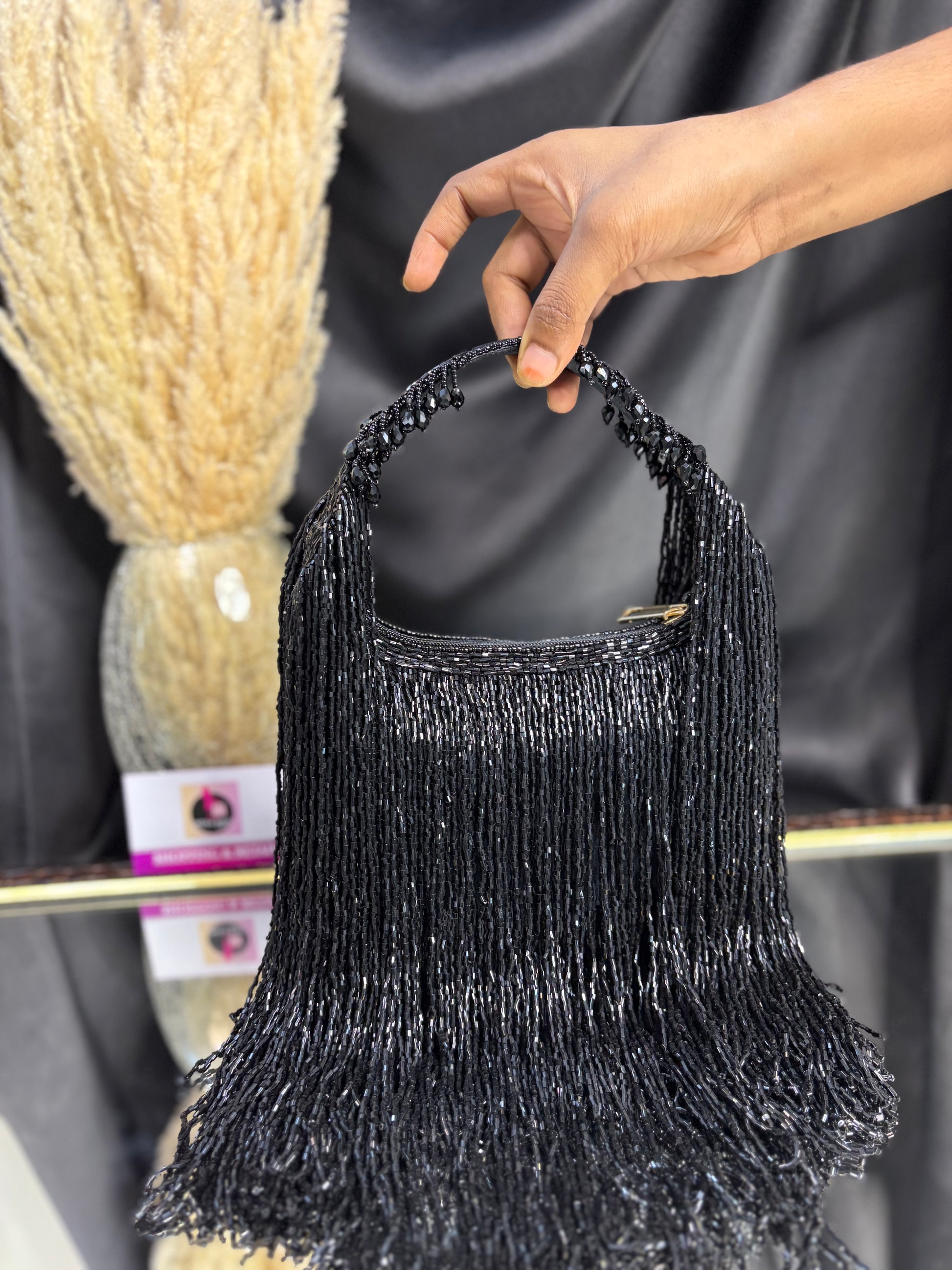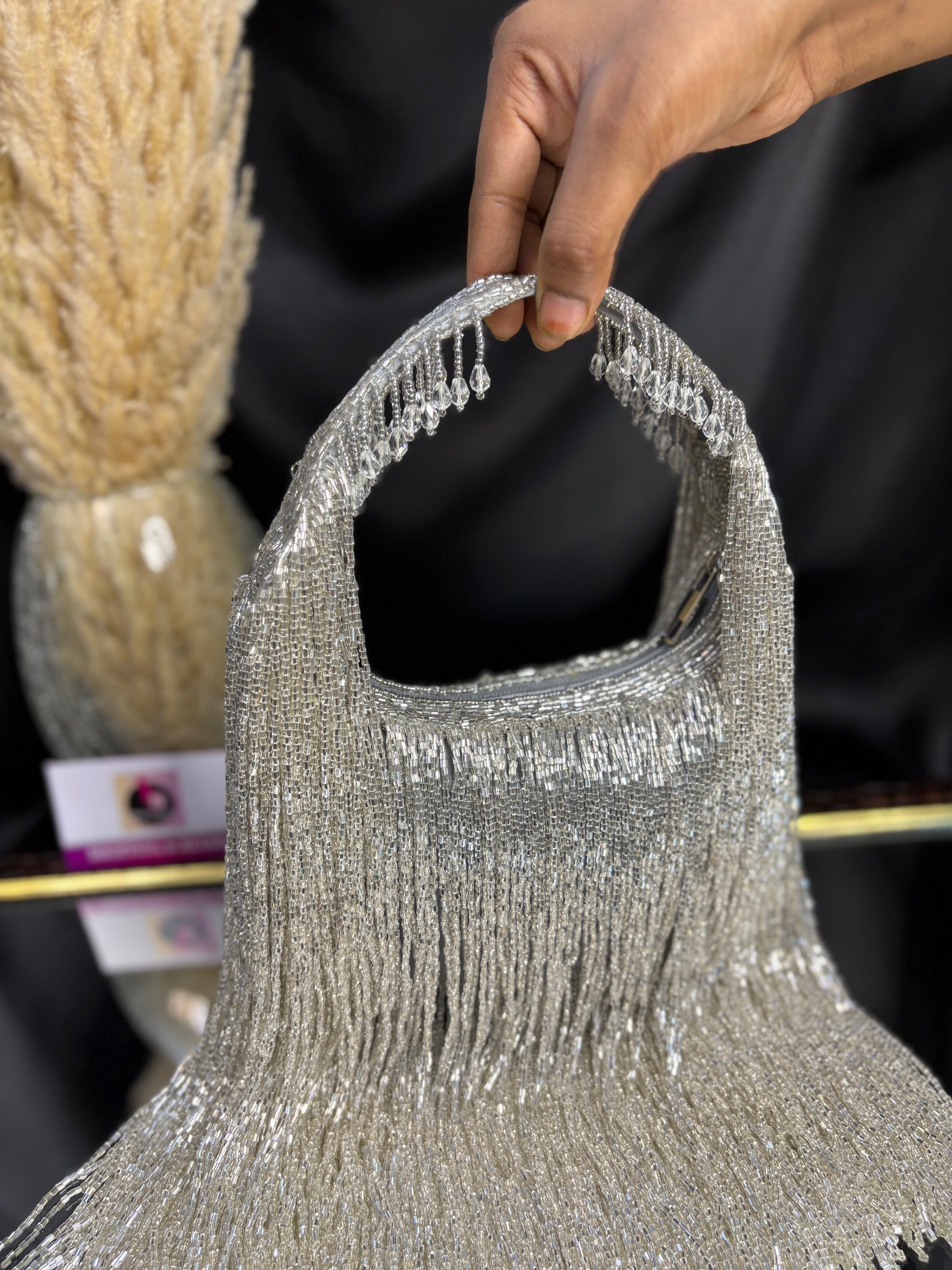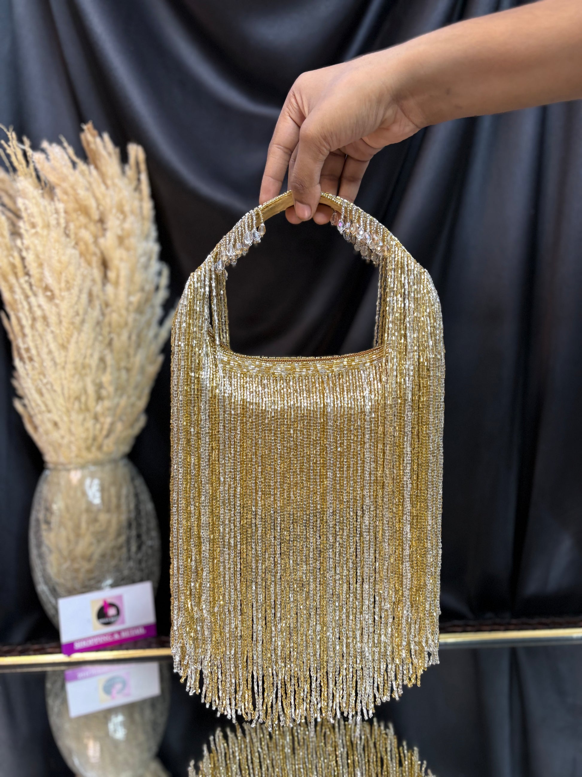Statement fringe bag and our hot selling piece with shimmering bead tassels and a handle — bold, glamorous, and perfect for party nights. outer material: premium full tassels. Phone Capacity: Phone will fit in. Sling: Attached handle. Closure: zip-closure. Pocket: No Pocket. Care Instructions: Keep it in a protective space when not in use and keep it away from moisture. Carry delicately!