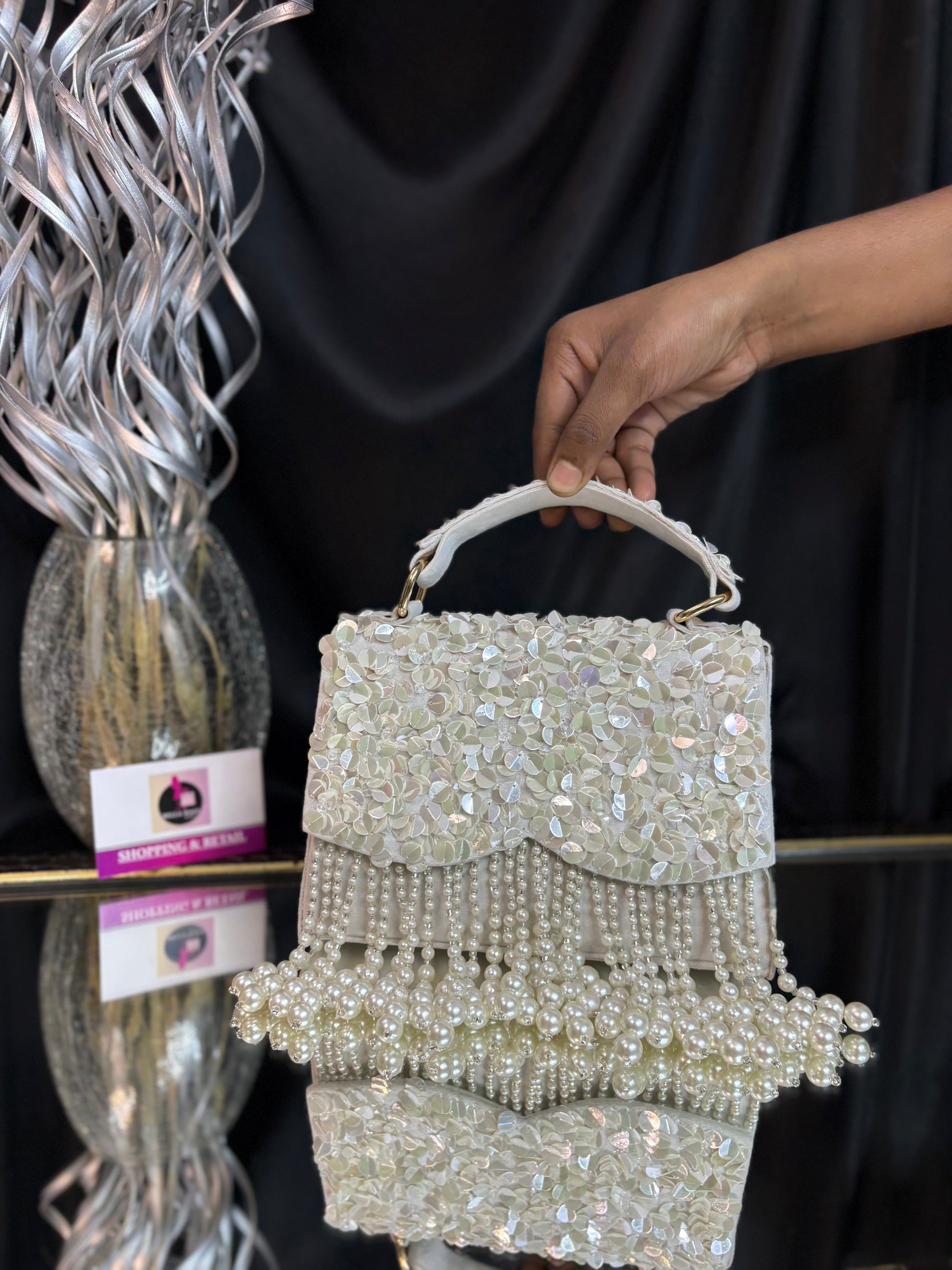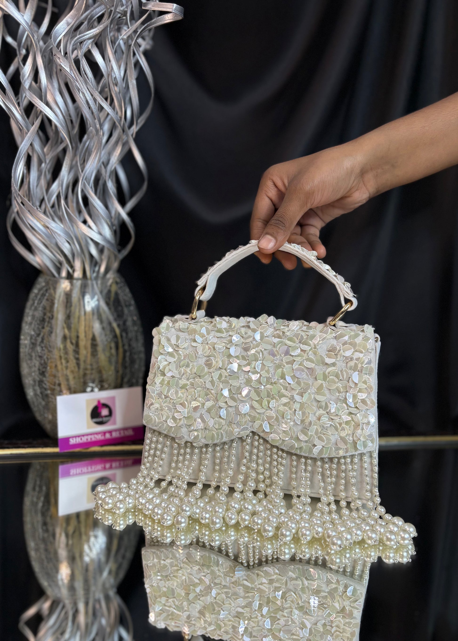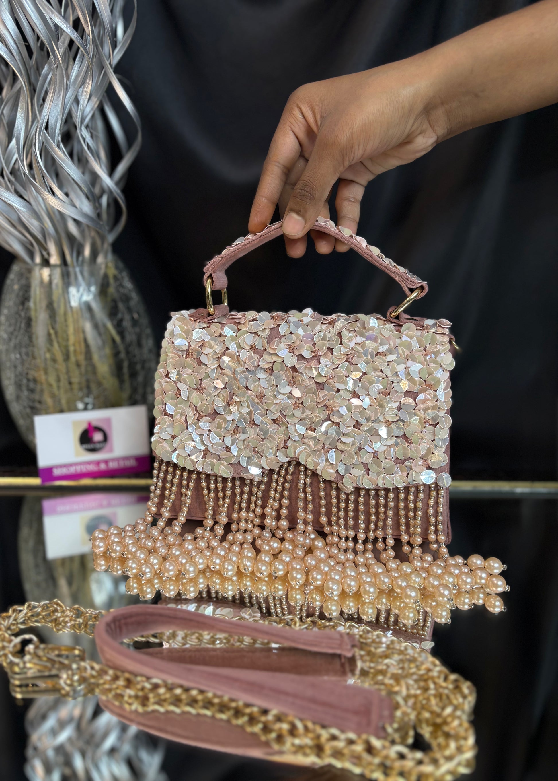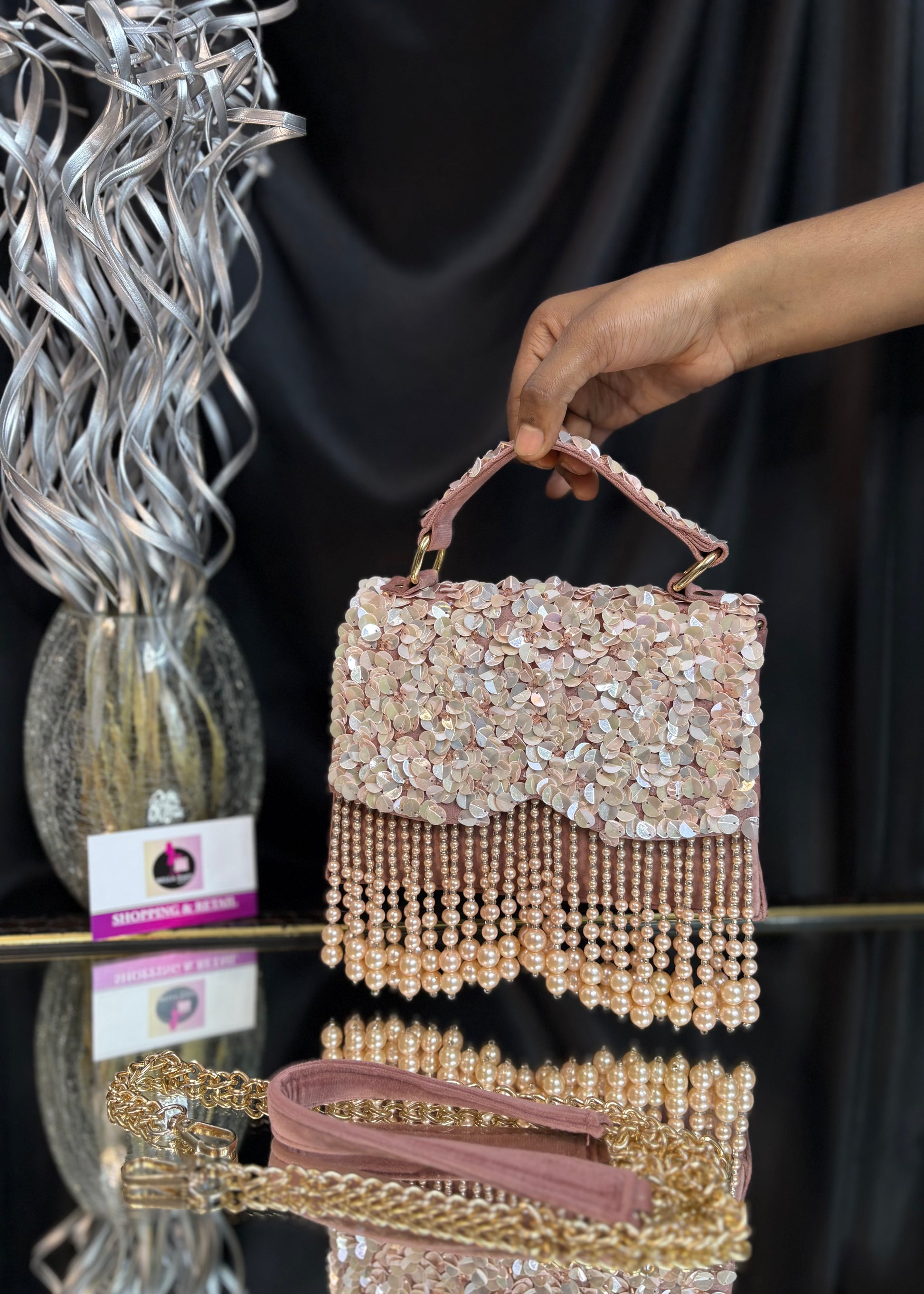 Meet your new statement maker, a dreamy sequin-flower tassel bag that brings full main character energy. Dripping in pearl fringes and soft petals. Lightweight, luxe, and totally Insta-worthy, this is the bag that makes your outfit go from cute to can’t-take-my-eyes-off-her.