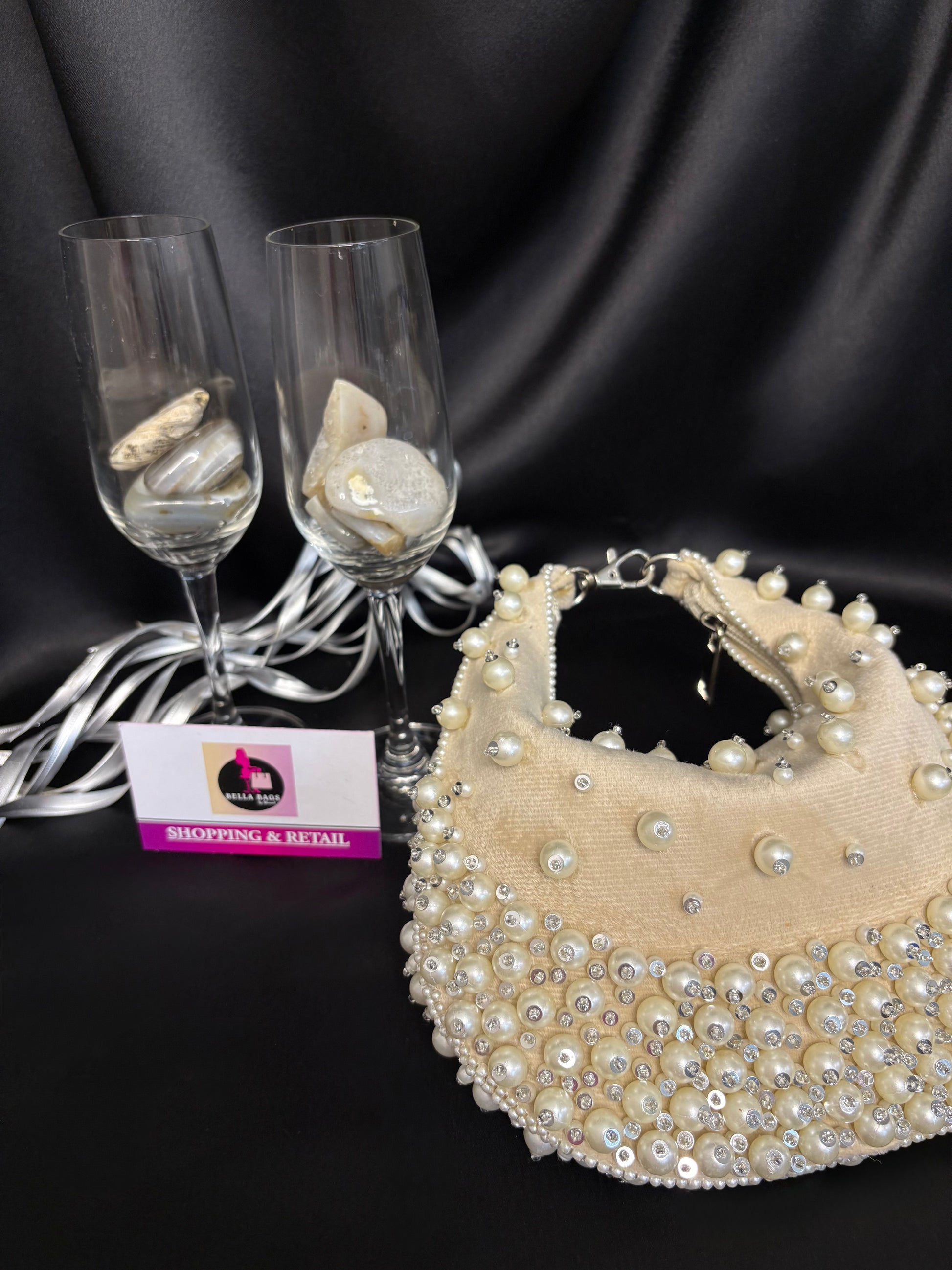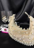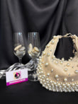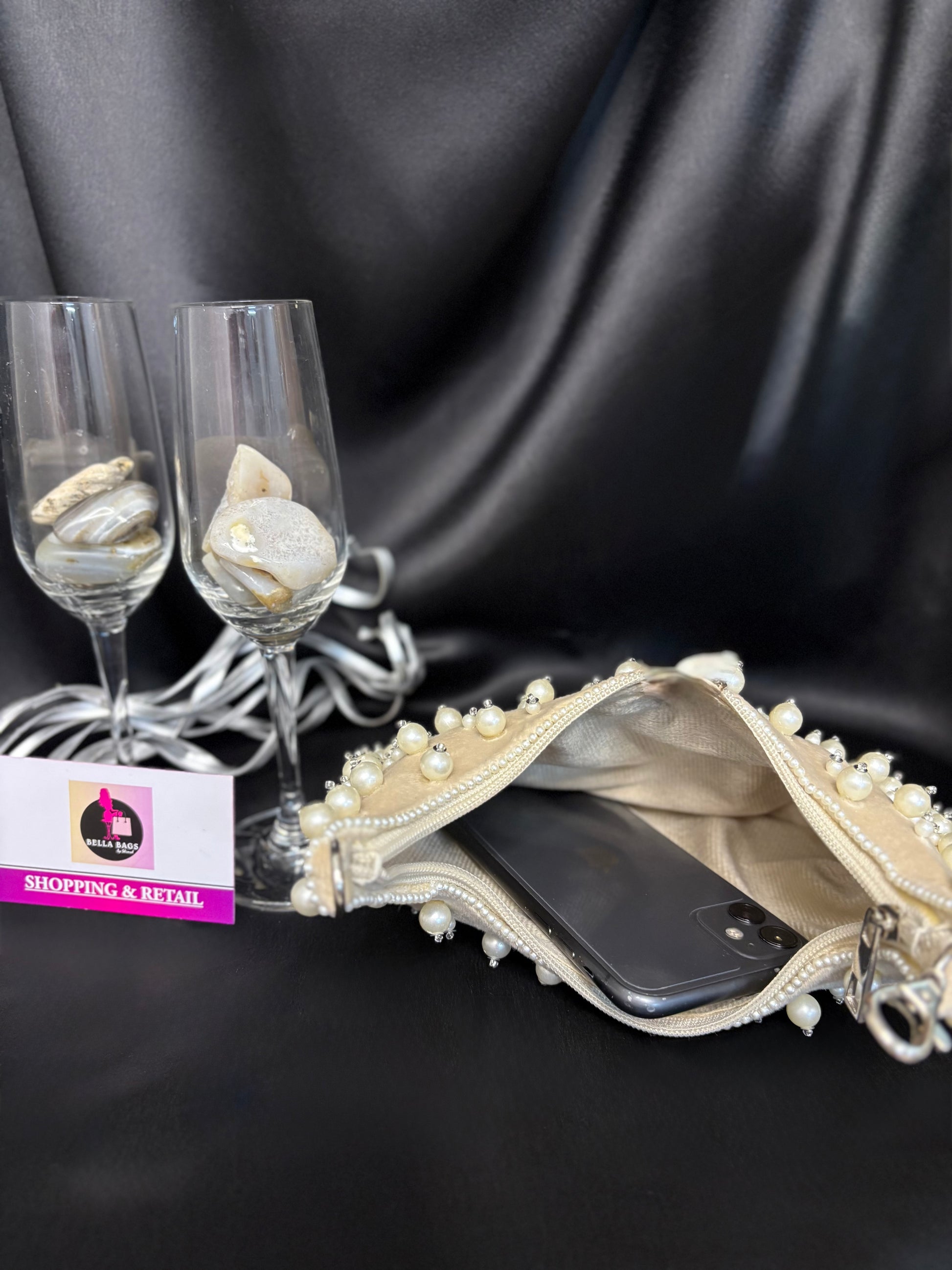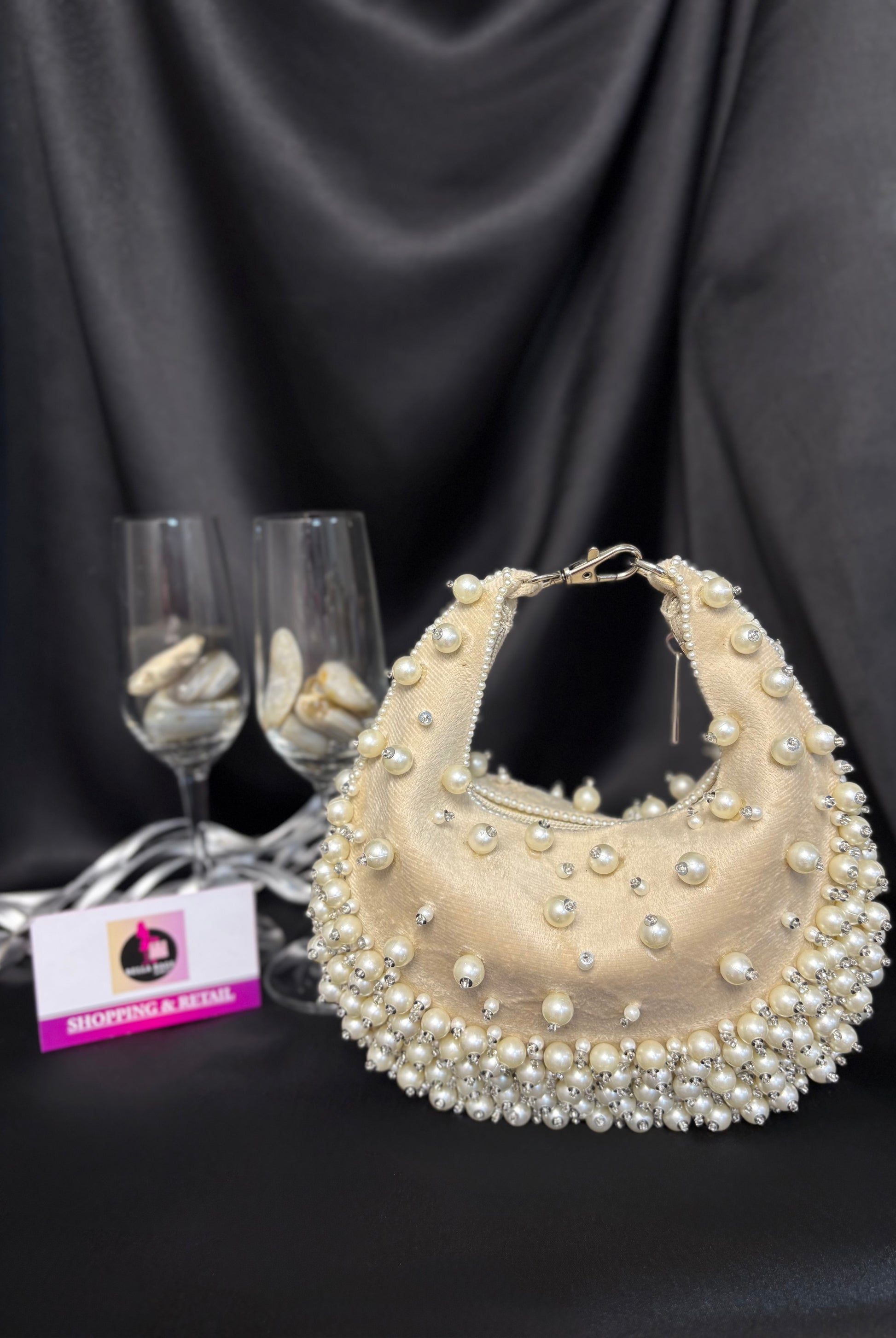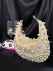 An elegant crescent bag embellished with scattered pearls, finished with a dense pearl border — a chic fusion of subtle glam and modern charm, perfect for special occasions. Outer Material: pearls. Phone Capacity: Phone will fit in. Sling: Comes with a hook style inbuilt handle. Closure: zip enclosure. Pocket: No Pocket. Care Instructions: Keep it in a protective space when not in use and keep it away from moisture. Carry delicately!