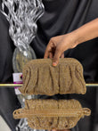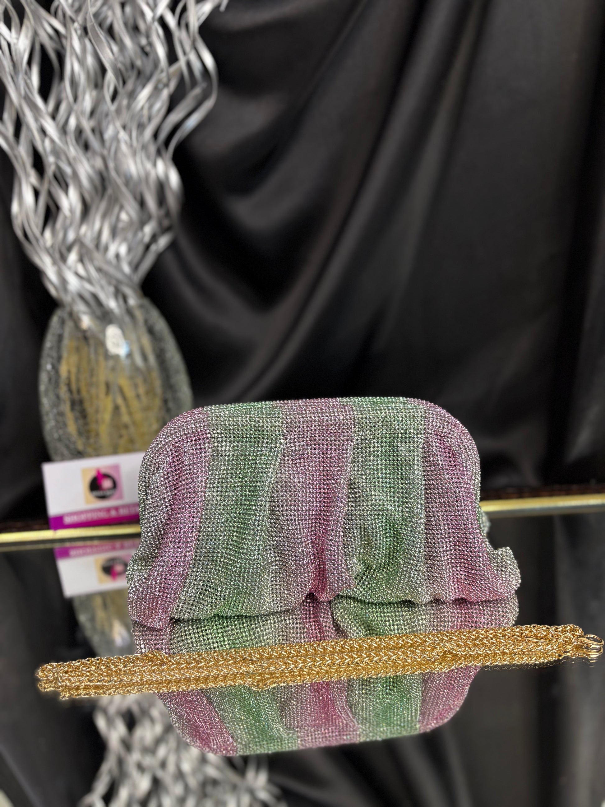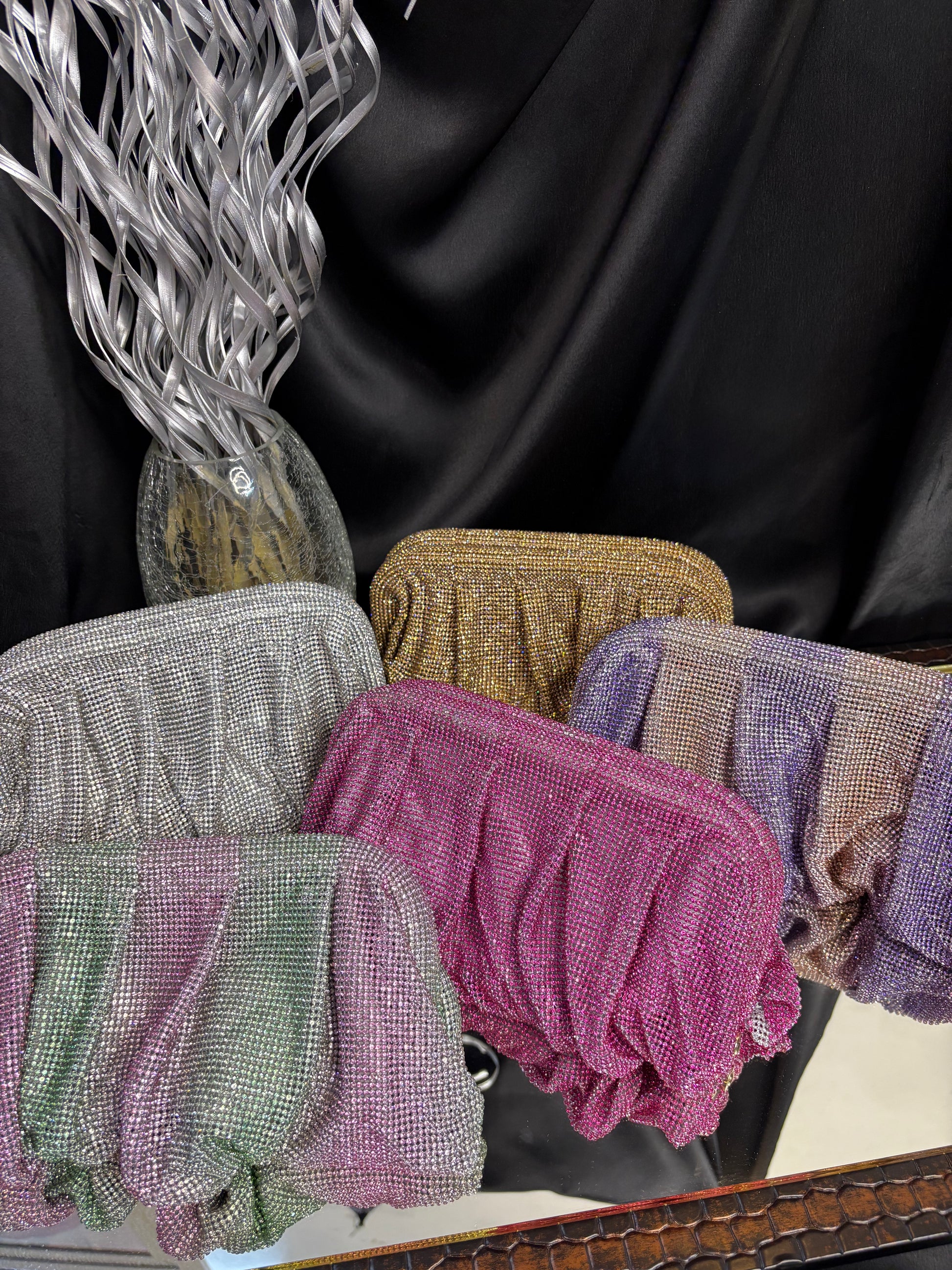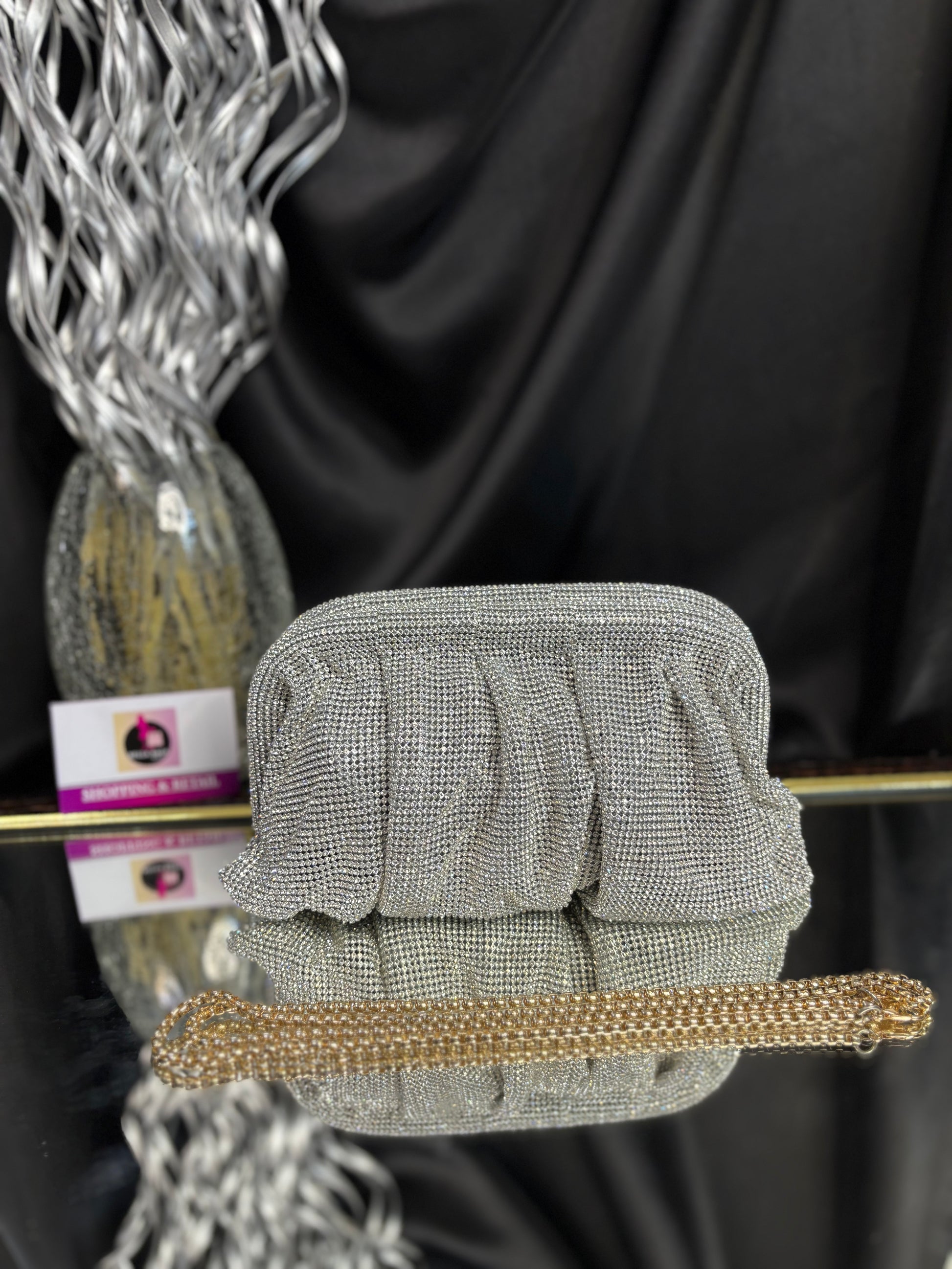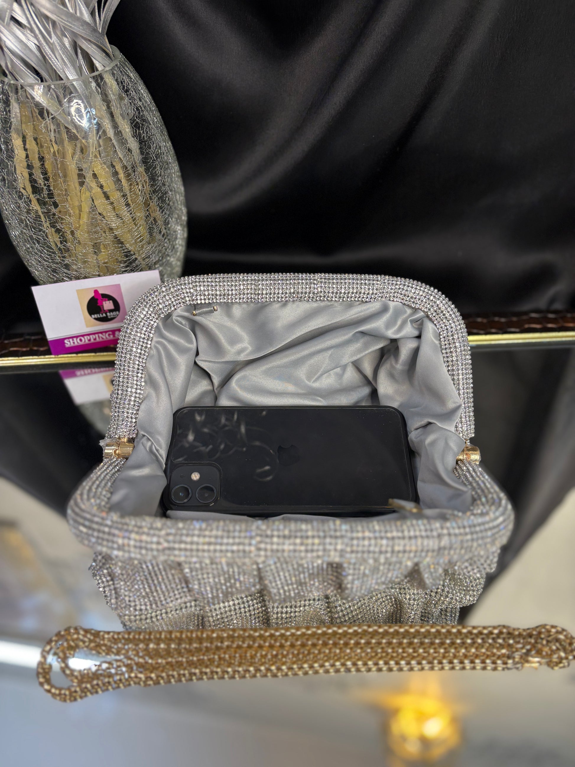 A glamorous rhinestone clutch featuring rich tones and delicate ruching — a sparkling statement piece for your festive or evening look. Outer Material: Rhinestones. Phone Capacity: Phone will fit in. Sling: Comes with a sling chain. Closure: magnetic enclosure. Pocket: No Pocket. Care Instructions: Keep it in a protective space when not in use and keep it away from moisture. Carry delicately! ok.